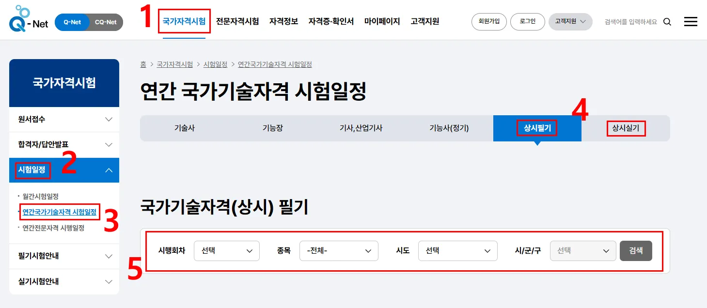 필기시험 일정확인을 희망하시는 경우, [상시필기]를 선택합니다.